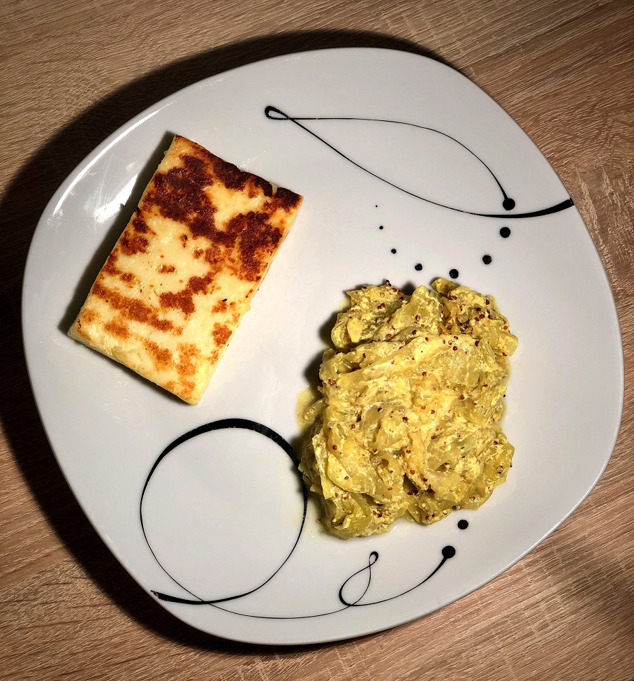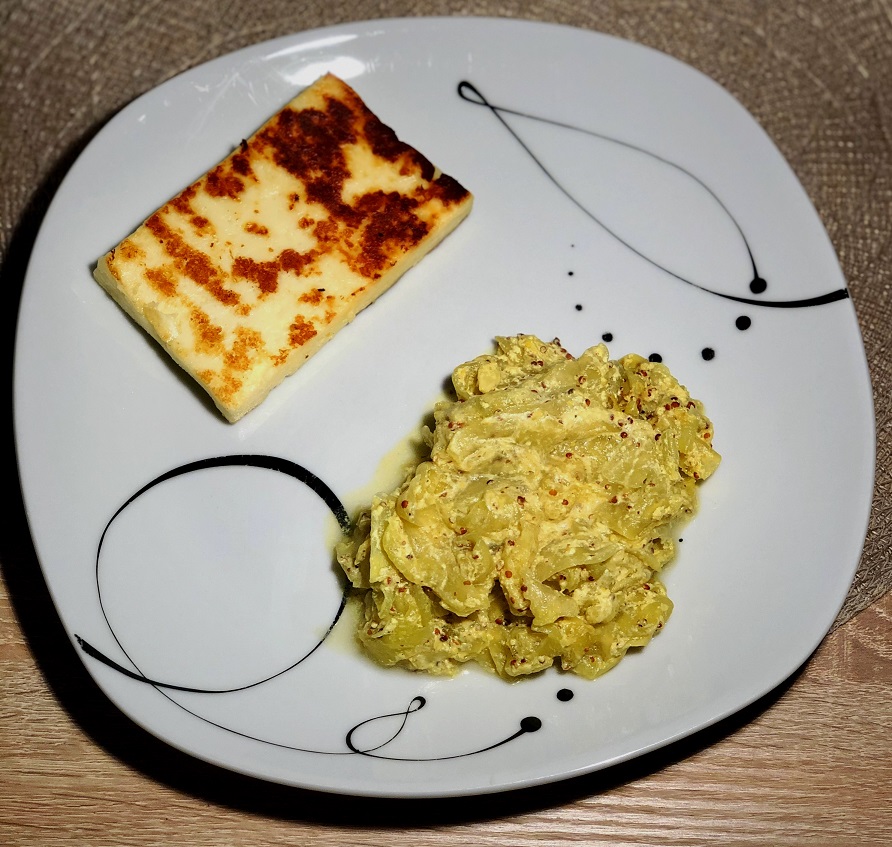 3. Zmešamo sojino smetano, gorčico in curry ter mešanico prelijemo čez bučke.
