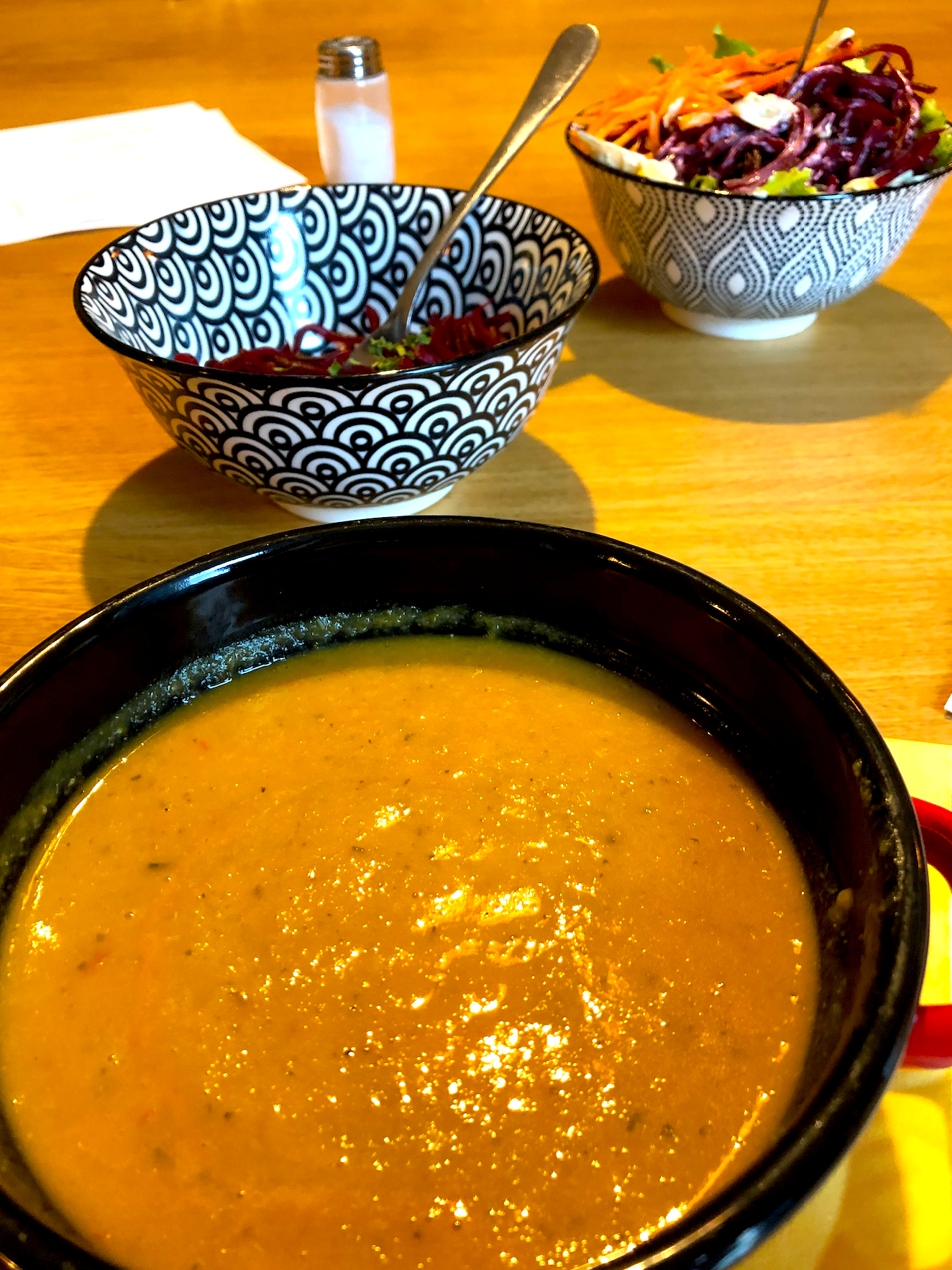 Pot smo nadaljevali skozi Bovec proti Kobaridu. V Bovcu lahko dan preživimo v Pustolovskem parku Bovec, kar smo na svojem enodnevnem izletu izpustili. V Kobaridu smo se odpravili na kosilo v Restavracijo Topli val, ki nas je razočarala. Potrudili so se sicer upoštevati naše želje, a v odnosu osebja ni bilo zaznati nobene topline. Poleg tega smo za vsakdanje jedi (npr. oslič na žaru in krompir v kosih, morska rižota) odšteli okrog 60 €, kar se nam je glede na okus, postrežbo, storitev in ostale okoliščine zdelo nadpovprečno veliko.
