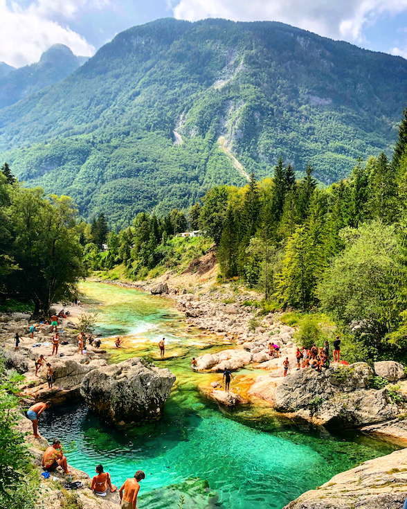 Na poti do Bovca smo imeli še nenačrtovani postanek, in sicer, pri Malih koritih Soče, ki so čudovita. Čista, smaragdno zelena in na trenutke modra, hladna voda, kjer se je kljub vsemu kopalo veliko ljudi. Na voljo so prostor za kampiranje in parkirišča, a moraš imeti srečo, da dobiš prazno mesto.