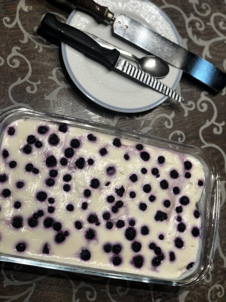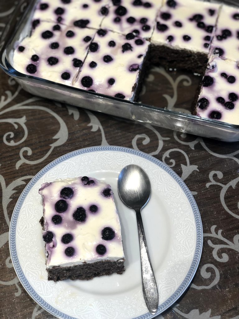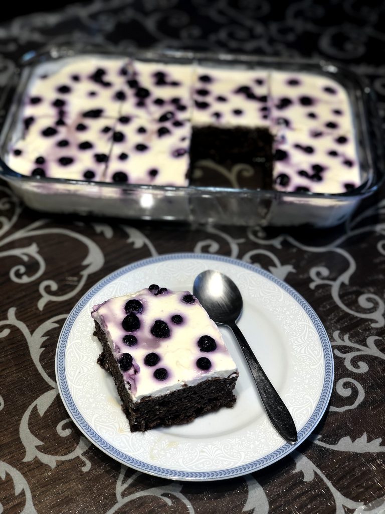 Kavno pecivo z grškim jogurtom in borovnicami spominja na tiramisu, saj je biskvit prepojen s kavo. Kljub temu ga ne bi poimenovala tiramisu, saj je krema drugačna, dodano pa je tudi sadje, ki sladico ali zajtrk popestri. Čeprav glede na število korakov za pripravo deluje zapleteno, je v bistvu potrebna samo priprava biskvita, kuhanje kave, priprava kreme in sestavljanje.