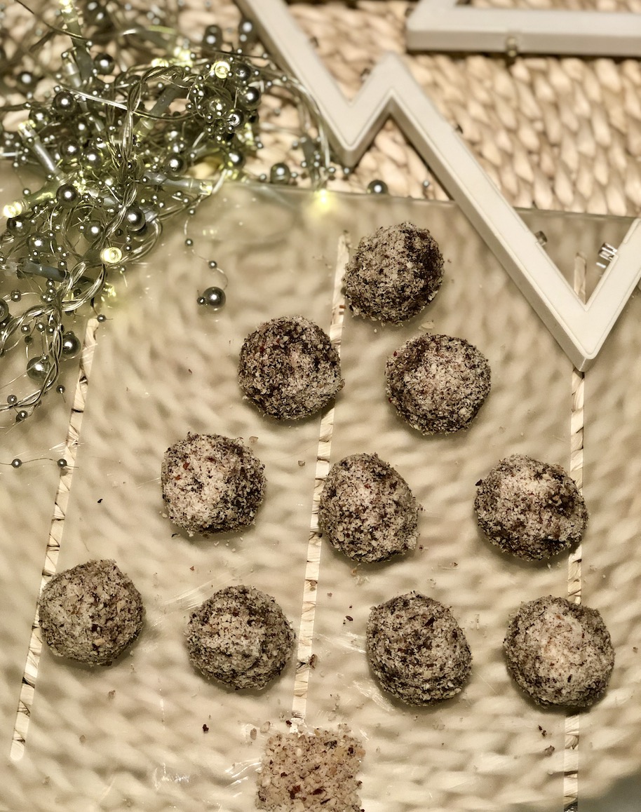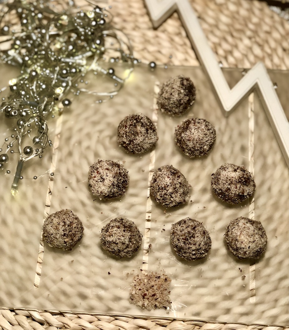 2. Oblikujemo v kroglice, ki jih povaljamo v preostalih mletih lešnikih.