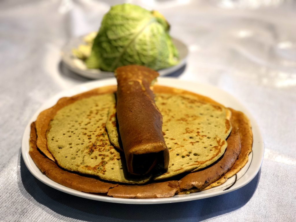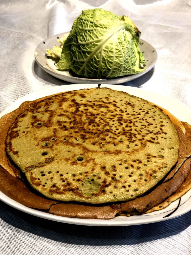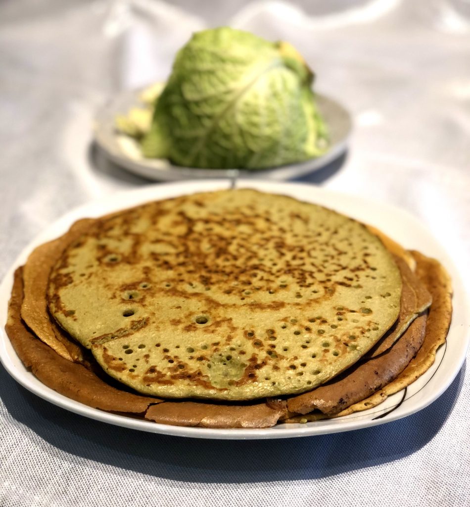 Za “darilo” sem dobila glavo ohrovta, s katerim si nisem najbolj domača. Kljub vsemu sem želela narediti nekaj nevsakdanjega in nastale so ohrovtove beljakovinske palačinke. Ker bi nekatere mogoče odvrnilo, da so ohrovtove, lahko besedo iz imena recepta izpustite, saj jih kasneje prepričal njihov okus.