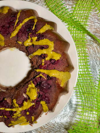 Sočni čokoladno-vanilijev kolač z borovnicami in s pistacijinim namazom je dejansko sladica, zaradi svoje hranilne vrednosti pa lahko predstavlja hranljiv obrok – zajtrk ali večerjo. Kolač razrežemo na 12 kosov in po 3 pojemo za posamezni obrok.